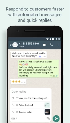 WhatsApp Business enables you to have a business presence on WhatsApp, communicate more efficiently with your customers, and help you grow your business.